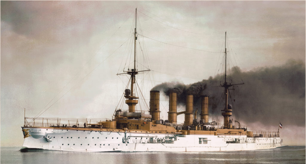• Armored Cruisers: Early designs like the Prinz Adalbert and Roon classes led to the formidable Scharnhorst class (Scharnhorst and Gneisenau). These ships achieved legendary status as part of the East Asia Squadron under Admiral Maximilian von Spee, notably winning the Battle of Coronel before being lost at the Battle of the Falkland Islands in 1914. The final armored cruiser, Blücher, was an intermediate step toward battlecruisers but was sunk at the Battle of Dogger Bank in 1915.