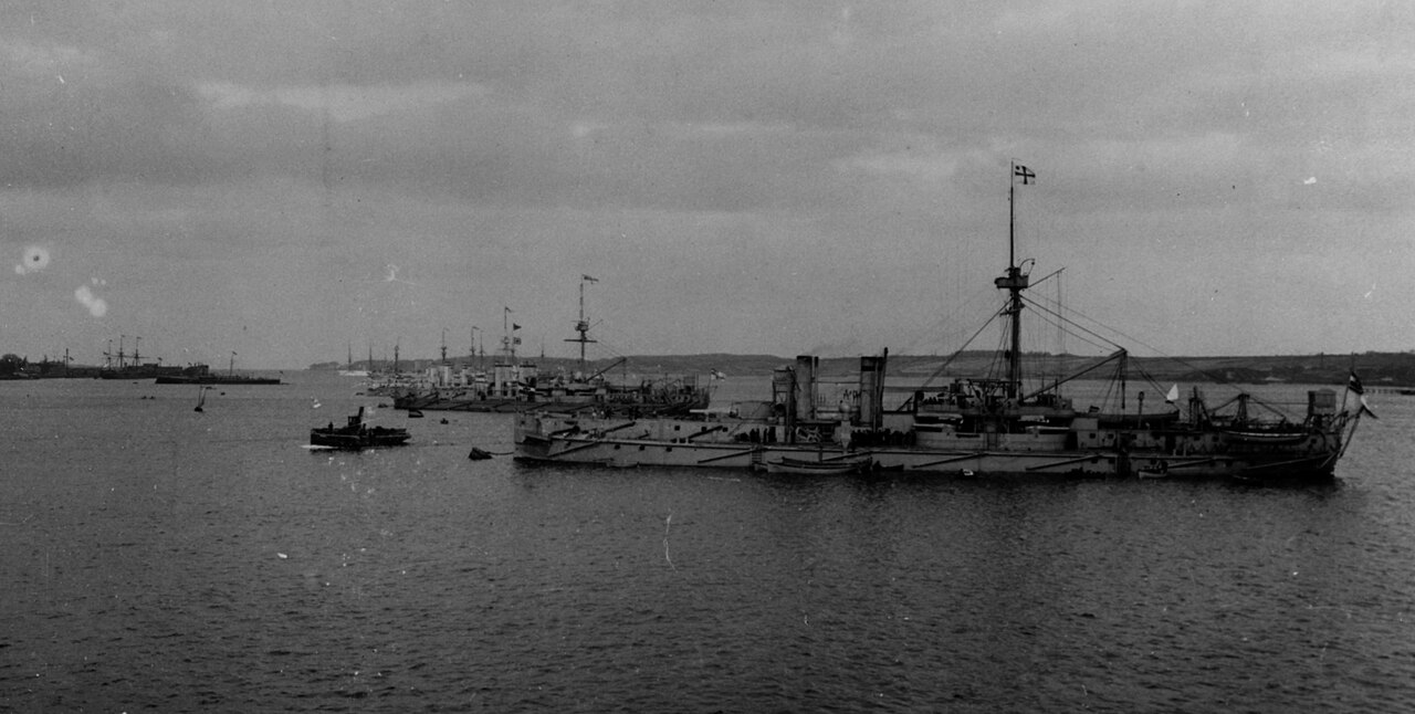 German fleet at anchor, 1896 (Ironclads at right)